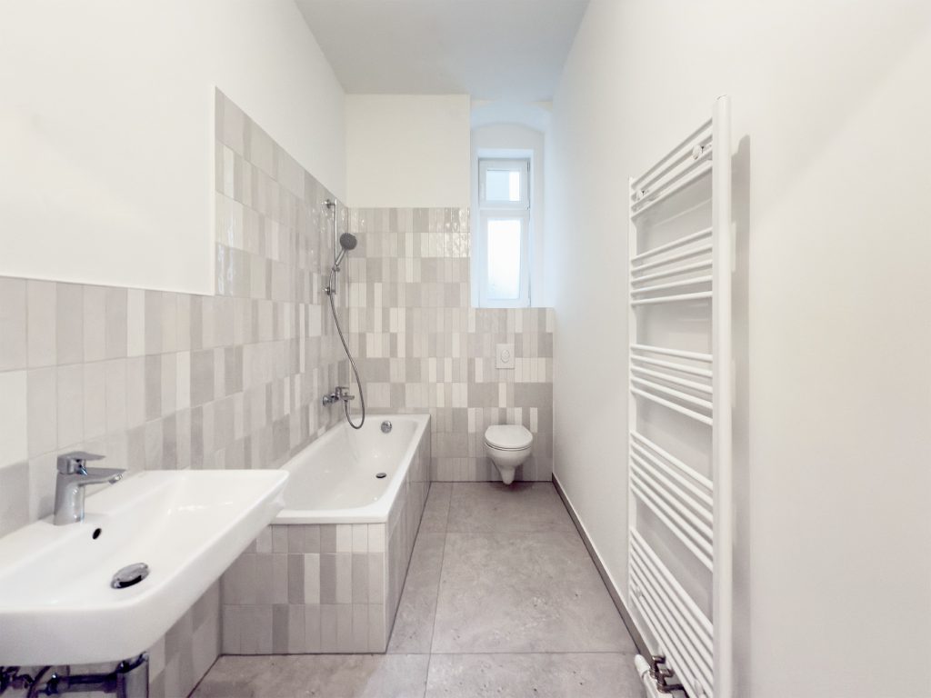 Wie gewohnt wurde alles komplett saniert. Die Elektrik wurde neu verlegt, ebenso wie die gesamten Sanitärleitungen. Die Badezimmer wurden neu definiert und optimal aufgeteilt, um den Wohnkomfort zu maximieren. Hochwertige Fliesen und moderne Designs sorgen für ein stilvolles Gesamtbild.