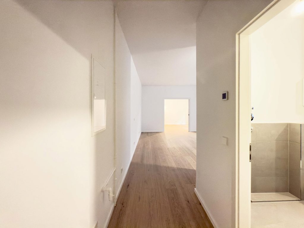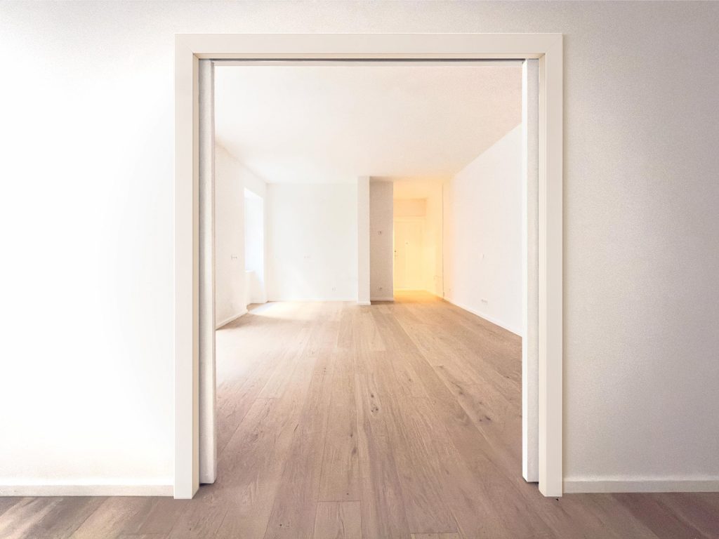 Die Wohnung erhielt eine komplett neu geplante Raumaufteilung, die den vorhandenen Platz optimal nutzt. Dabei wurde die Elektrik vollständig erneuert und präzise Schalterpositionen festgelegt – für maximale Funktionalität im Alltag. Ein besonderes Detail ist das neue Schiebetür-Element, das nicht nur Platz spart, sondern auch ein modernes, offenes Wohngefühl erzeugt.
